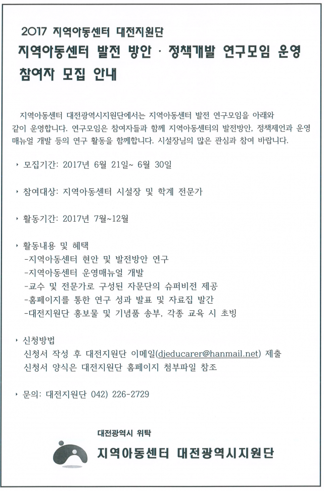 [공지] 대전지원단 지역아동센터 발전 연구 모임…