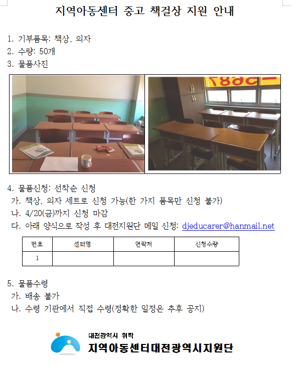 [] (나눔) 지역아동센터 중고 책걸상 지원…
