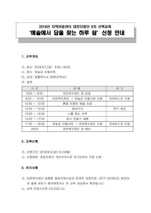 [] 2018년 지역아동센터 상반기 선택교육…