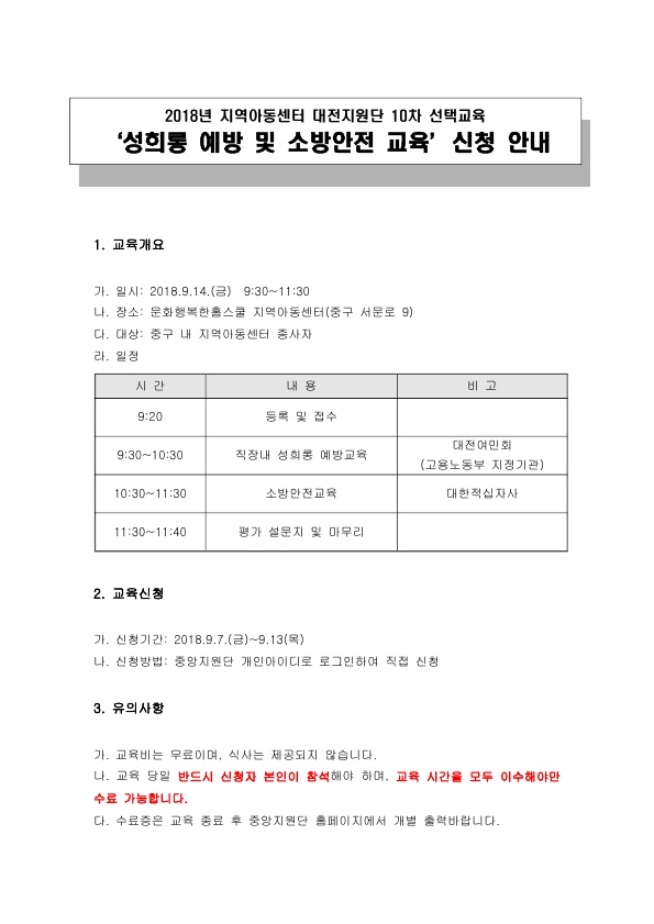 [] 아동복지교사 보수(선택)교육 신청 안내…