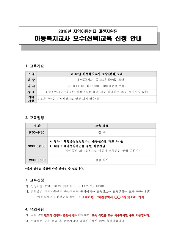 [] 아동복지교사 보수(선택)교육 신청 안내…
