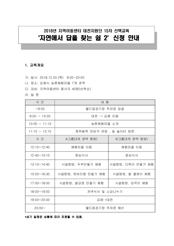 [] 15차 선택교육 [자연에서 답을 찾는 쉼…