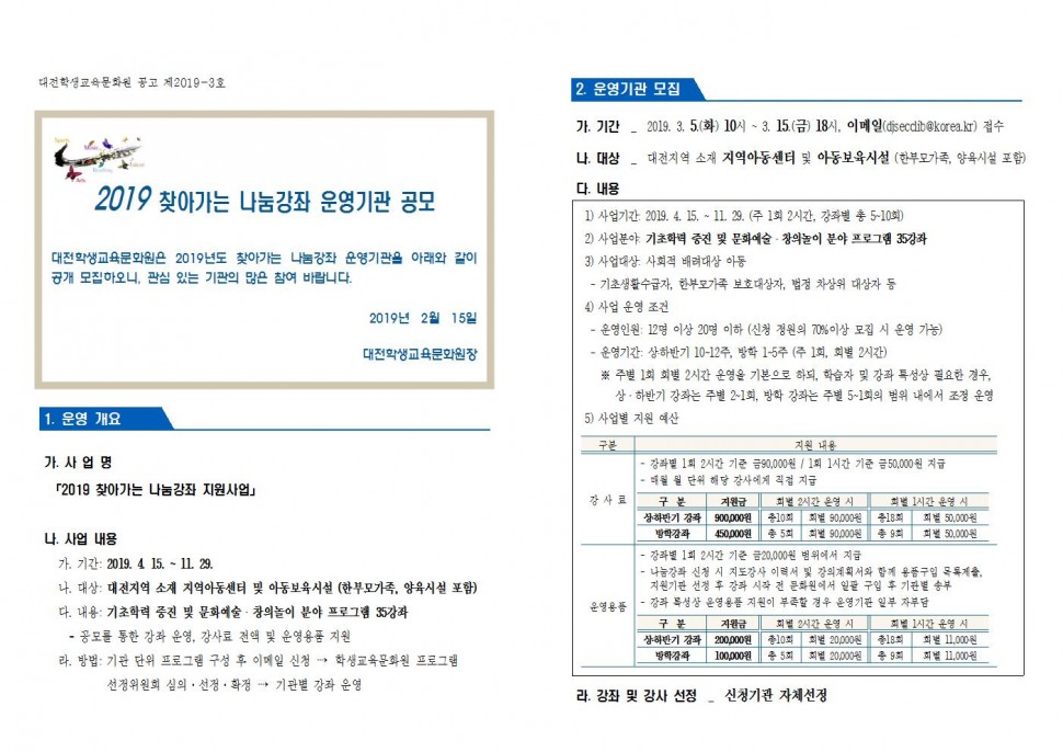 [] 대전학생교육문화원 2019 찾아가는 나눔강좌…
