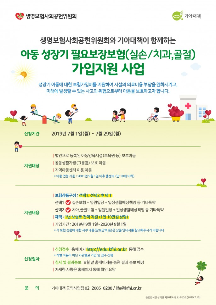 [한국국제기아대책기구] 2019 생명보험사회공헌위원회 아동 성장기 필요보험 (실손/치과, 골절) 가입 지원 사업