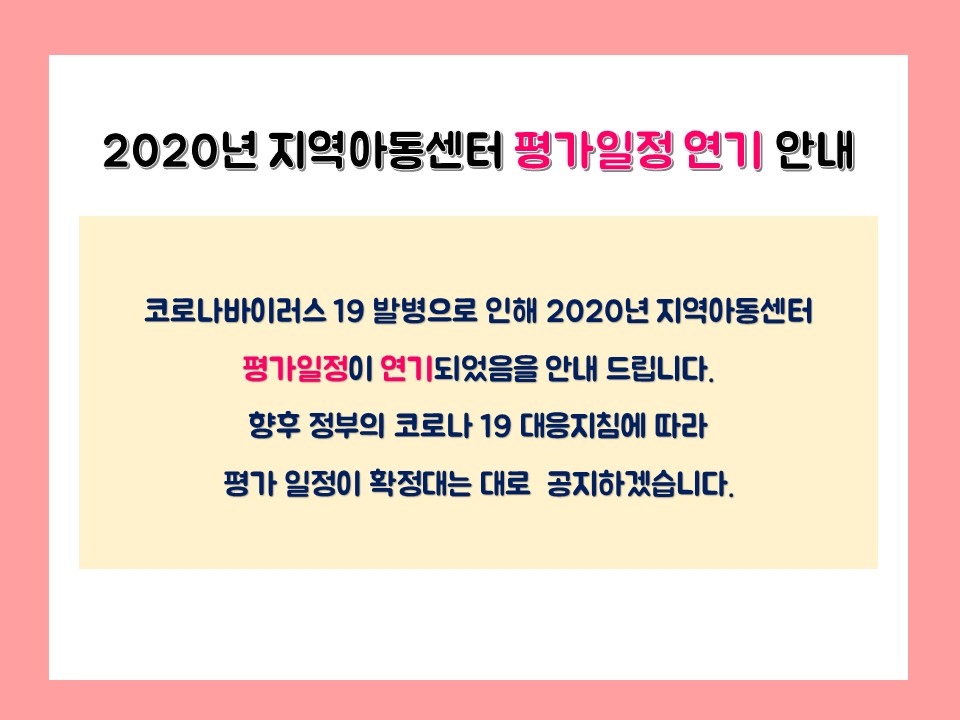 [공지] 2020년 지역아동센터 평가일정 연기 안내