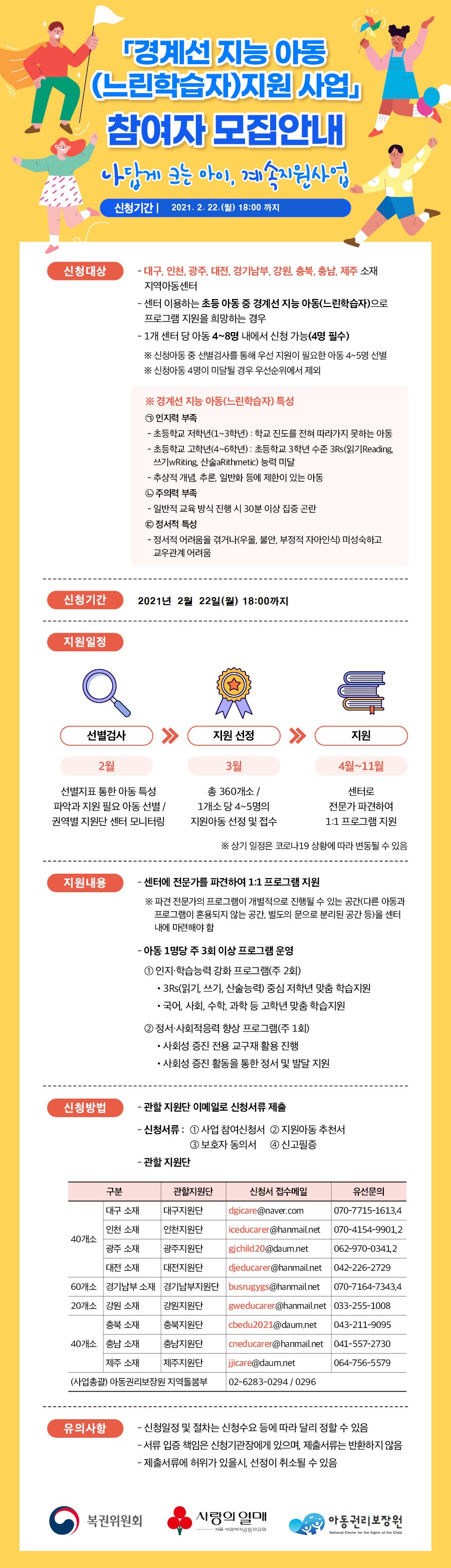 [공지] 「경계선지능아동 사회적응력향상 지원사업」…