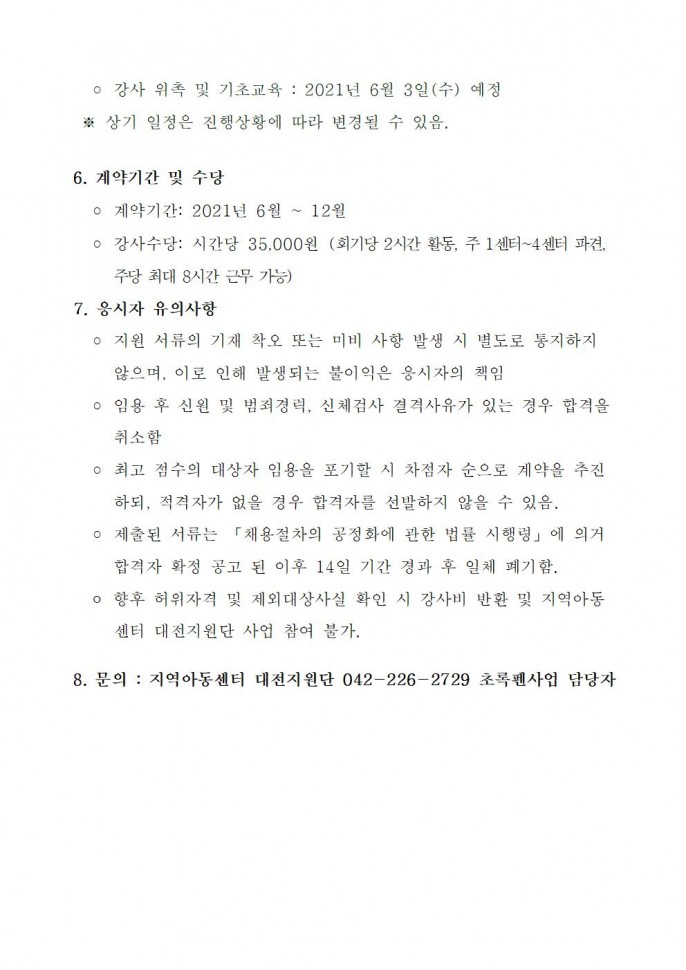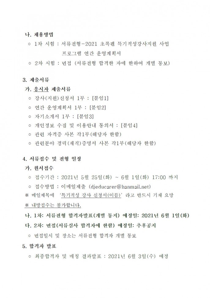 2021 초록펜 특기적성강사 지원 사업 강사…