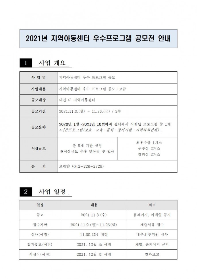 [공지] 2021년 지역아동센터 우수 프로그램 공모전…