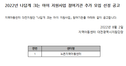 [공고]나답게 크는 아이 지원사업 참여기관…