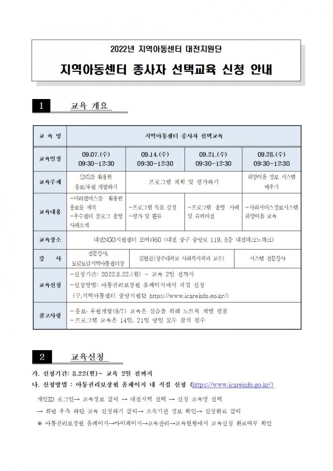 2022년 시설장, 생활복지사 필수교육 신청안내…