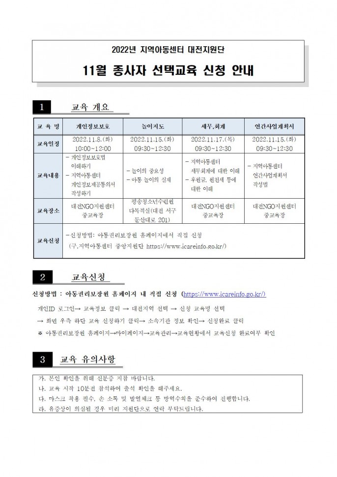 [선택] 11월 종사자 선택교육 신청 안내