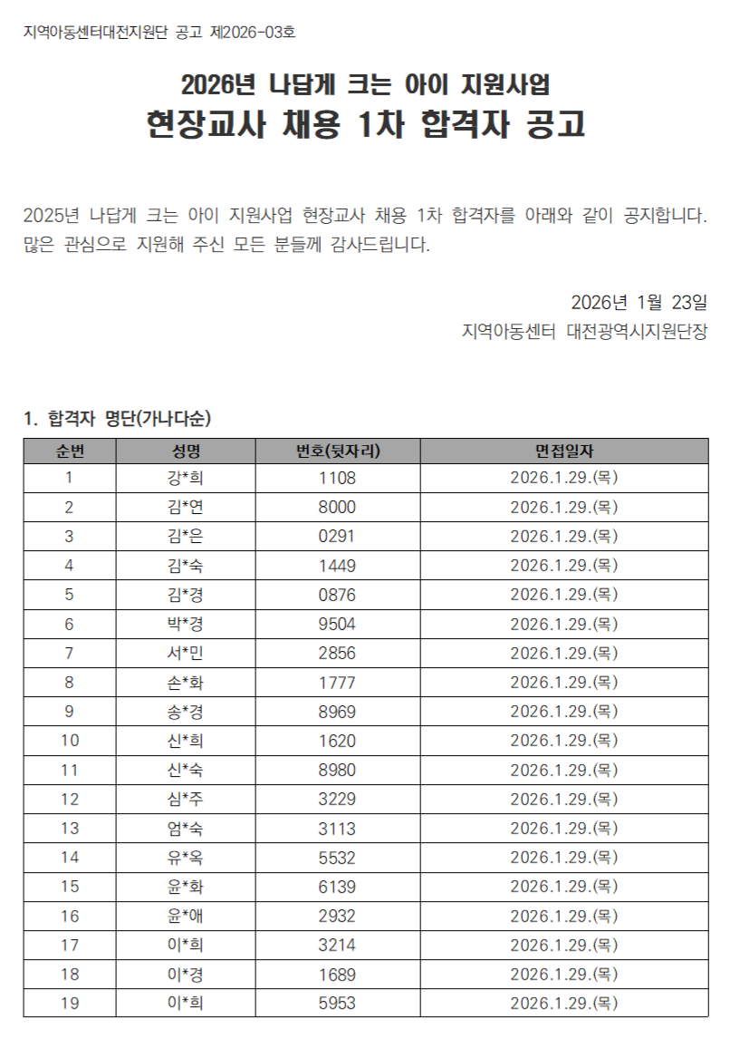 [공지] 2026나답게크는아이 현장교사 1차 합격자…